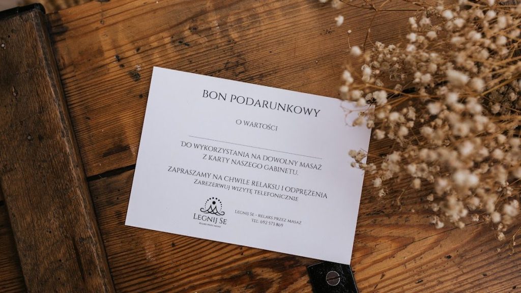 W ofercie Legnij Se znajdziesz eleganckie vouchery podarunkowe na wybrany masaż lub pakiet zabiegów, które można dopasować do potrzeb obdarowanej osoby.